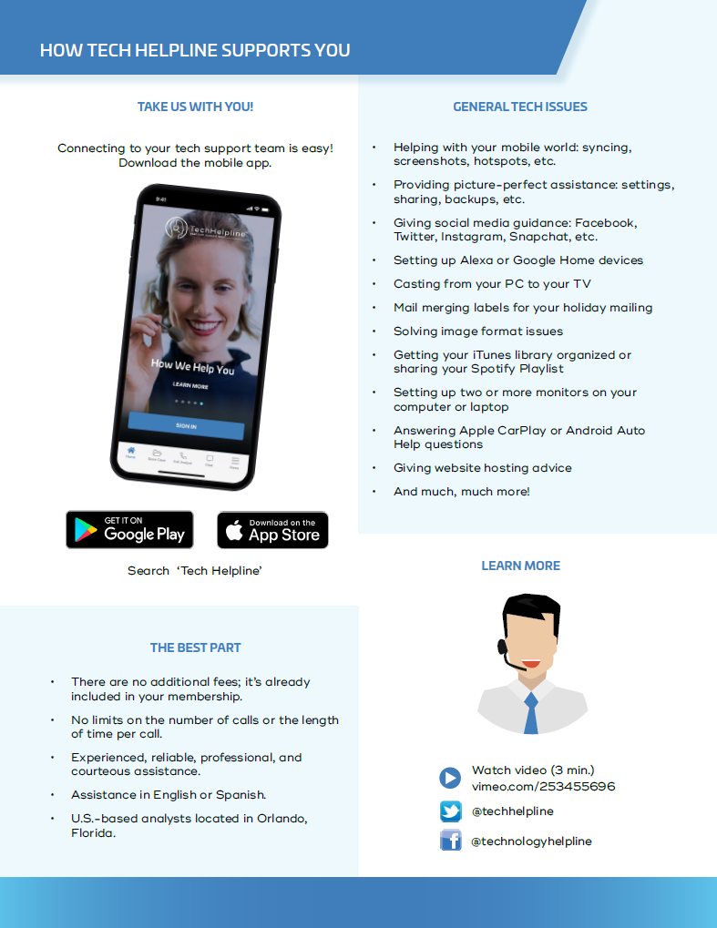 Tech Helpline offers free and easy service to members who need help with their technology projects – but the “easy” part just became easier thanks to a new app that allows members to connect with an advisor while on the road.