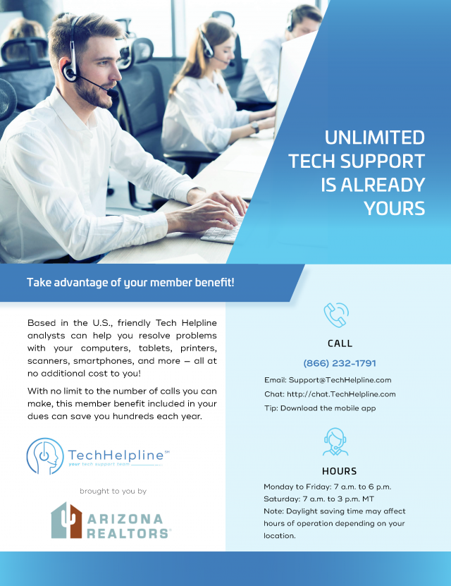 Arizona REALTORS® is pleased to continue this valuable tech support benefit. Try it and let us know about your Tech Helpline experience!